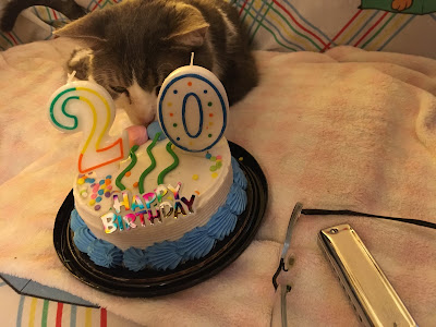 I bought a small birthday cake and added candles for Benny's birthday. It's bittersweet because we are pretty sure he won't make it until his actual birthday. But, he had a few licks of frosting and I ate the cake in honor of him.